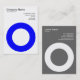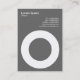 A business card template with a holed circle or 'O' symbol on the front. Company name, business type and address on the front with name, job title, telephony, web and email addresses on the back, with a similar layout on a grey background with a repeat of the front symbol in white. This card can also be further customised.
