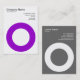 A business card template with a holed circle or 'O' symbol on the front. Company name, business type and address on the front with name, job title, telephony, web and email addresses on the back, with a similar layout on a grey background with a repeat of the front symbol in white. This card can also be further customised.