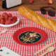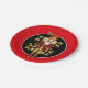 Holiday paper plate shown with a festive Christmas nutcracker print.