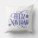 This Christmas throw pillow is shown with festive holiday Feliz Navidad snowflakes print.