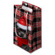 Dog lovers will adore receiving or giving this cute and funny holiday gift bag featuring an adorable Affenpinscher wearing festive accessories on a plaid of shades of red and black.