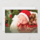 Send this modern holiday baby birth announcement card and thank you for gifts all in one card. The design features a photo of your baby with text overlay which reads "Thank You" in a modern script typography Below is your baby's name. The back of the card has a cranberry red background with your personalised birth details. Designed by artist ©Susan Coffey.