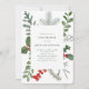 A beautiful watercolor greenery and red berry arrangement frames your baby shower invitation. The card has simple, elegant typography, and there is plenty of room to personalise.