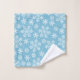 This bath towel set is shown in a festive holiday snowflake print design.