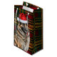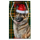 Dog lovers will adore receiving or giving this cute and funny holiday gift bag featuring an adorable Belgian Tervuren dog in a Santa hat, on a red, gold and green seasonal plaid patterned background.