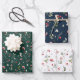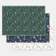 Celebrate the season with this beautiful holiday wrapping paper set, featuring three distinct designs with a festive berry and branch pattern on different backgrounds: dark green, dark blue, and white. This elegant trio of nature-inspired gift wrap is perfect for creating a cohesive yet varied look under the Christmas tree. Ideal for winter weddings, holiday celebrations, and seasonal gifts, this wrapping paper adds a touch of winter charm to any present.