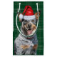 Dog lovers will adore receiving or giving this cute and funny holiday gift bag featuring an adorable Cattle Dog, Blue Heeler or Queensland wearing festive accessories on a plaid of shades of green.