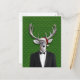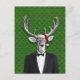 Merry Christmas, Happy Holidays and Season's Greetings Whimsical Deer Decor. This lovely green garland pattern pillow is adorned with a buck in full antlers, wearing a santa hat and black tuxedo.