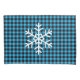 Pillowcase is shown in a black and blue buffalo plaid snowflake print.