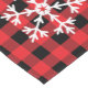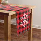 This table runner is shown in a lovely black and red buffalo plaid with snowflakes print.