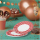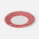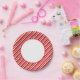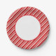 Party paper plate is shown with a festive holiday candy cane striped print.