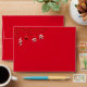Card envelope shown in red with a holiday berry and ornaments print design on the front.