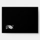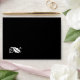 Holiday card envelope is shown in black with a white holly print on the front and back flap.