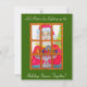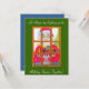 This is a cute invitation to help light up the holidays with a cheerful celebration for all! The invitation is decorated with a Santa who is in the holiday spirit. The picture on this card shows Santa wearing a smile as he helps some friends by lighting the Menorah Candles.