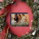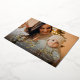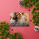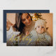 "Holiday Cheer" appears in gold foil calligraphy script lettering, overlaid on a horizontal or landscape orientated photo. Customise this beautiful Christmas card design with your family name and the year along the bottom.