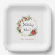 Holiday Cheer Poinsettia Wreath Gold Personalized Paper Plate