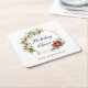 Holiday Cheer Poinsettia Wreath Gold Personalized Square Paper Coaster