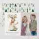 This funny Christmas holiday photo card features a drinking reindeer with holiday ornaments. The reverse side features a cream background with tree patterns. Personalise it for your needs. You can find matching products at my store.