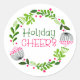 Holiday Cheers Wreath Green Foliage Pink Classic Round Sticker