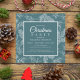 This chic holidays design features an elegant floral pattern of holly, mistletoe and fir in white on a festive teal background. Inside the square frame add your personalised information for your corporate Christmas Party Invitations. Simply edit the text in the text boxes provided.