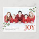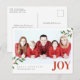 Holiday Christmas JOY Photo Greeting Card Postcard with white border. All text is fully customisable, option to remove or add text. On this template you have the option to increase or decrease the size of the border by using the customise further option and enlarging or decreasing the size of your image. Winter Berry floral watercolor accents.