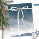 Exquisite holiday or Christmas Party invitation with gorgeous watercolor holiday wreath with flowers, foliage, bow and rustic antlers in dusty blue, navy, silver, sage and white tones. Back in unique blue watercolor wash with cream "present" bow on the top. Collection with coordinating products available.