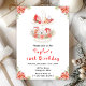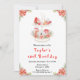 This elegant and festive birthday invitation features a cake stand with gingerbread cookies, macarons, candy, hot cocoa and a teapot. In the corners are beautiful red poinsettia flowers. The text combines handwritten script and sans serif fonts for a stylish and modern look. This is perfect for a birthday Christmas brunch or tea party.