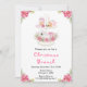 This elegant and festive holiday brunch invitation features a cake stand with gingerbread cookies, macarons, candy, hot cocoa and a teapot. In the corners are beautiful pink poinsettia flowers. The text combines handwritten script and sans serif fonts for a stylish and modern look. This is perfect for a Christmas brunch or tea party.