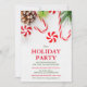 Colourful Holiday Christmas Winter Party Candy Cane Pinecone Red and White Stripes Invitation