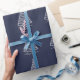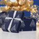 Holiday Christmas Wrapping Paper Silver Tree Navy