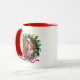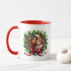 This ceramic coffee mug is shown in a festive holiday wreath print with a custom sample photo, customize and edit and place your photo in with this template.