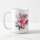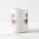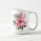 Holiday coffee mug is shown with a festive poinsettia print.
