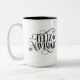 This ceramic coffee mug is shown in a festive holiday Feliz Navidad snowflakes print.