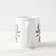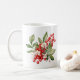 Holiday coffee mug is shown with a lovely red berries floral print.
