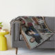 A quality printed throw has its advantages. This is a much finer weave throw than its loopier cousins, and though lighter, it is worth the investment for custom room accessorizing. The back is much prettier than the typical brown, and the fringe on the long sides very vivid, the selvage nicely done. Before photographing, I washed the throw in cold water, delicate, with a thicker woven throw the same size. On tumble dry low, this throw was dry in half the time as the other. This is a very practical quality if you use throws for furniture covers or to wrap up in frequently. The sleekness of the fabric makes it a great layer for accenting or protecting without the feeling of sitting on too much stuff. Perfect for napping or when you feel a light chill coming on. The color printing is beautiful and on this fabric, matched the design and color of my Photoshop image. This is an advantage for blending room fabrics and colors. The fringe on the short sides prints the colors from the design image and therefore varies from the side fringe. I streaked a white fractal line through the plaid pattern to give the illusion of weaving. This printed as crisp as an illusory thread, and put some white in the short side fringe, showing another advantage of print vs loomed- for artistic purposes, line lines, detail, and color integrity can be planned and preserved. My loomed throws have color limitations and more of a needlepoint texture. Print throws reproduce an exact image. The throw felt a little stiff straight out of the package, but this went away in the first delicate wash. Of course I searched the wash water for ink or bleeding and there was none.