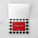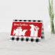 Two holiday Dachshunds ready for Christmas and playing in the presents. Festive red with white playful puppy silhouettes accented with black and white buffalo plaid is sure to be a dog lover favourite. Personalise greeting on both the front and the inside of card to suit.
