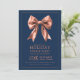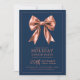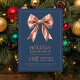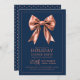 Holiday Dinner Party Rose Gold Satin Bow Navy Invitation