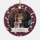 Give your furry friend a special place on the tree this Christmas with our festive pet photo ornament. Cute design features your favourite dog photo with your pet's name beneath, on a burgundy plum background dotted with pawprints and dog bones.