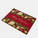 Doormat shown with a deep red background and a pretty festive holiday Christmas garland print.
