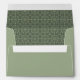 An elegant snowflake-inspired patterned border in a light, sage green colour A simple yet elegant and classic and timeless Holiday design. Floral elements within the pattern along with a filigree design create this patterned design. This design features Christmas holiday green snowflakes, green and red elegant simple, Christmas style envelope, minimalist minimal classic traditional, a 5x7 a7 size envelope, with a trendy stylish calligraphy script font, whimsical typography design style, festive winter snowflakes pattern, a vintage Christmas cards, a simplistic elegance traditional