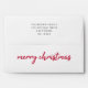 Send your festive greetings in style with this simple and modern “Merry Christmas” envelope featuring bold deep red typography on a crisp white background with a matching red interior. The clean minimalist layout creates an elegant, contemporary feel that complements any Christmas card design. Personalise your names and address for a unique touch that makes your holiday correspondence feel thoughtful and refined. Perfect for pairing with matching cards, stickers, or stationery from the same collection, this stylish red and white envelope offers a polished finish that stands out beautifully. A timeless, modern choice for families, couples, or small businesses who love classic design with a festive edge.