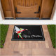 Holiday doormat shown with a black background with a cute magical fairy print.