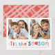 A super fun card design featuring the quote "TIS THE SEASON" in colourful type and cute cross hatch pattern on the backside. Maximum area to display your beautiful family too!