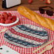 Cute Christmas plates featuring holiday themed knitting pattern, a deer silhouette, and script