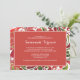 A spirited, colourful, invitation with swirls in various shades of red and green with a red, framed centre.