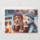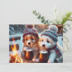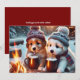 5 x 7 seasonal flat card with two adorable puppies enjoying a warm drink by the campfire after having a fun adventure in the snow.