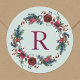 Holiday Floral Christmas Wreath Monogram Classic Round Sticker