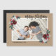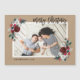Affordable custom magnetic holiday photo cards with simple templates for customisation. This festive design features an elegant watercolor floral border in red, green and burgundy colours on a faux kraft paper background. The text reads "Merry Christmas" in a modern calligraphy script font. Personalise it with your photos, name, the year or other custom text. Use the design tools to edit the text, add more photos and create unique one of a kind holiday photo card magnets.