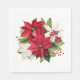 Party paper napkins are shown in the white luncheon size with a watercolor print of a lovely red poinsettia floral mix.