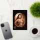 Holiday photo card is shown with a festive Christmas holly accent and with a greeting from you.